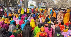 নারায়ণগঞ্জের ফতুল্লায় কারখানার বন্ধের প্রতিবাদে একটি কারখানার পোশাক শ্রমিকরা সড়ক অবরোধ করে বিক্ষোভ করেছেন।