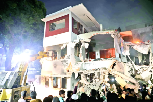 রাত ১১টায় চারদিকে বিক্ষুব্ধ ছাত্র-জনতা দুটো ভবনেই আগুন ধরিয়ে দেয়। রাত সোয়া ১০টার দিকে ছাত্র-জনতার আনা বুলডোজার সংবলিত ক্রেন আটকে দেয় আইনশৃঙ্খলা বাহিনীর সদস্যরা। তবে রাত ১১টার দিকে ছাত্র-জনতার প্রতিবাদের মুখে তারা বুলডোজার ক্রেন প্রবেশ করতে দেন। রাত সাড়ে ১২টার দিকে দুটো ভবনই বুলডোজার দিয়ে গুঁড়িয়ে দেওয়া হচ্ছিল।