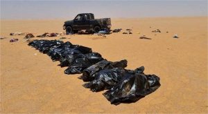 লিবিয়ার দক্ষিণ-পূর্ব মরুভূমির দুটি গণকবর থেকে প্রায় ৫০ জনের মরদেহ উদ্ধার করা হয়েছে। এসব মরদেহ অভিবাসন ও শরণার্থী প্রত্যাশীর, যারা দেশটির মধ্য দিয়ে ইউরোপে পাড়ি জমাতে চেয়েছিলেন।