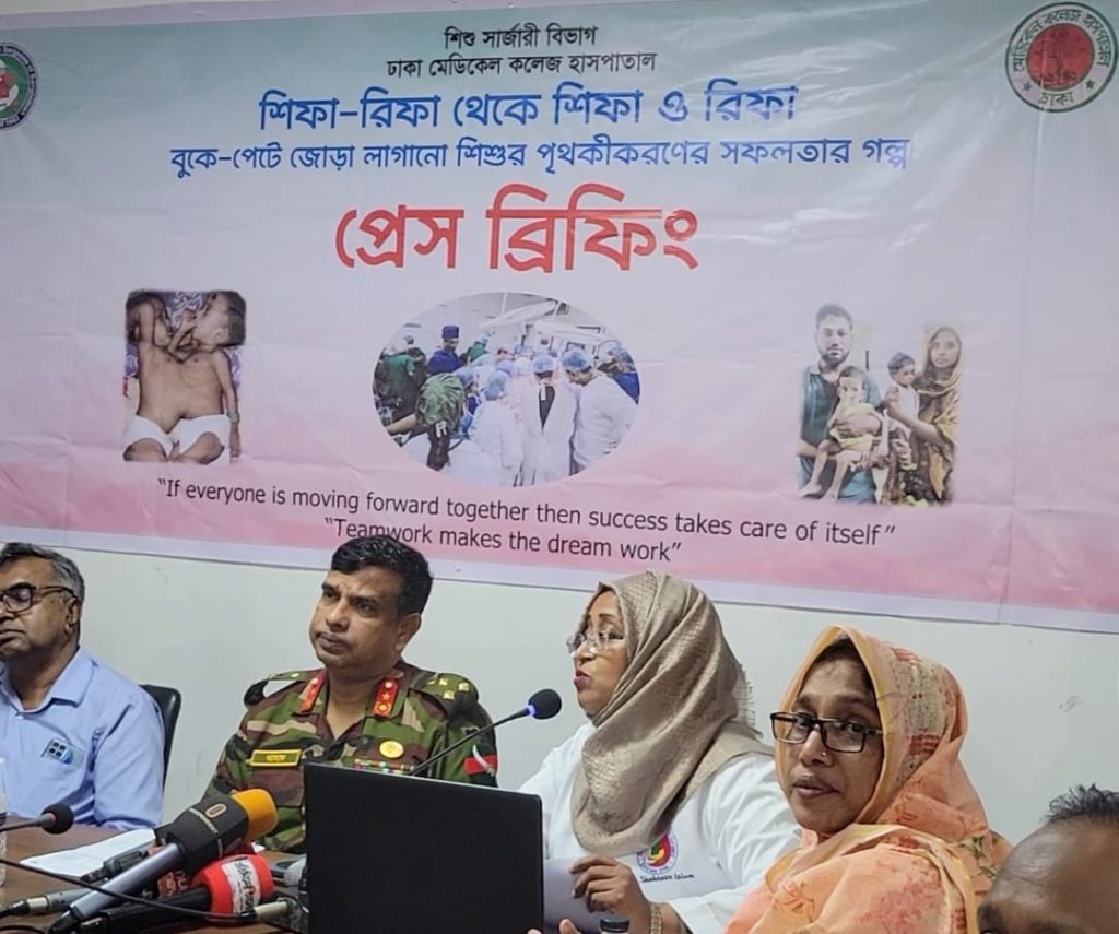 ঢাকা মেডিকেল কলেজ হাসপাতালে পেটে-বুকে জোড়া লাগানো শিফা ও রিফার অস্ত্রোপচার সফল হয়েছে। ১০ ঘণ্টার অপারেশনে শিফা ও রিফাকে আলাদা করা হয়।
