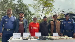 শরীয়তপুরে ব্রিটিশ আমেরিকান টোব্যাকোর ডিলার পয়েন্টে স্টাফদের হাত-পা বেঁধে ভল্ট থেকে এক কোটি ৩৪ লাখ টাকা লুটের ঘটনায় তিন ডাকাতকে গ্রেপ্তার করেছে পুলিশ। বৃহস্পতিবার দুপুর ১২টায় জেলা পুলিশ সুপারের কার্যালয়ের সম্মেলন কক্ষে আয়োজিত এক সংবাদ সম্মেলনে এই তথ্য জানান পুলিশ সুপার নজরুল ইসলাম।