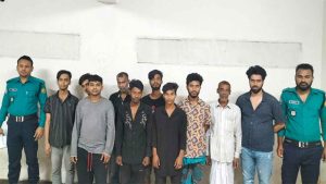 গ্রেফতাররা হলো— সজিব (২০), ইমরান (১৯), বিজয় (২০), নাদিম (২০), আহাদ (২২), রবিউল (২১), হৃদয় (১৯), সোহান (২৪), সাগর (১৯), আবদুল হাকিম (২২), মোরসালিন (২৪), মনির হোসেন (১৯)।
