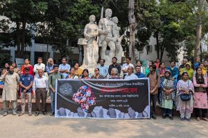 নারীর প্রতি সহিংসতার বিরুদ্ধে ঢাকা বিশ্ববিদ্যালয়ের শিক্ষক-শিক্ষার্থীরা প্রতিবাদ সমাবেশ করেছেন।