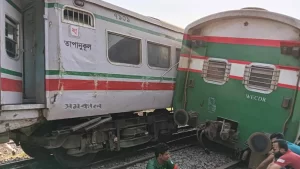 রাজশাহী রেলস্টেশনের ওয়াশপিটের সামনে ঢাকাগামী ধূমকেতু এক্সপ্রেস ও পঞ্চগড়গামী বাংলাবান্ধা এক্সপ্রেস ট্রেনের মধ্যে সংঘর্ষের ঘটনা ঘটেছে। শনিবার (১৫ মার্চ) দুপুর আড়াইটার দিকে রেলস্টেশন এলাকায় এই দুর্ঘটনা ঘটে।