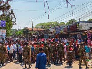 এদিকে মঙ্গলবার দু’জন পরিবহন শ্রমিক নেতার ওপর হামলার পর বুধবার শহরের স্টেশন রোডে ব্যবসায়ীরা দোকান পাট বন্ধ রাখেন। বুধবার বেলা ১১টার দিকে পরিবহন শ্রমিকরা স্টেশন রোডে বন্ধ রাখা নারিকেলের দু’টি আড়তে ভাঙচুর করে আগুন ধরিয়ে দেয়। ওই দোকান দু’টি হামলার শিকার শ্রমিক নেতা আনোয়ার হোসেনের। মানিক এবং রতন নামের দুই ব্যবসায়ী ভাড়া নিয়ে ব্যবসা পরিচালনা করেন।