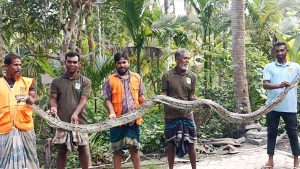 বাগেরহাটের সুন্দরবন সংলগ্ন শরণখোলার সোনাতলা গ্রাম থেকে ২০ ফুট লম্বা এক অজগর সাপ উদ্ধার করেছে কমিউনিটি প্যাট্রলিং গ্রুপের (সিপিজি) সদস্যরা।