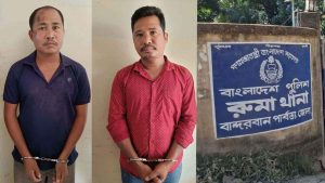 আটক গ্রীরেন্দ্র ত্রিপুরা (৩৮) রেমাক্রী প্রাংসা ইউনিয়নে ম্রংখ্যয়ং পাড়া মৃত বদলা ত্রিপুরা ছেলে। অপরজন রুমা সদর ইউনিয়নে সালেম পাড়া গ্রামে শক্তি ত্রিমথি ত্রিপুরা (৪৫)।