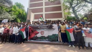 ফিলিস্তিনের গাজা ভূখণ্ডে দখলদার ইসরায়েলি বাহিনীর হামলার প্রতিবাদে মানববন্ধন করেছেন বাংলাদেশ প্রকৌশল বিশ্ববিদ্যালয়ের (বুয়েট) শিক্ষার্থীরা। একইসঙ্গে জেরুজালেম ভূখণ্ডে ফিলিস্তিনিদের পূর্ণ অধিকার রয়েছে এবং তাদের স্বাধীন রাষ্ট্র প্রতিষ্ঠার সংগ্রাম বৈধ ও ন্যায্য বলেও জানান তারা।