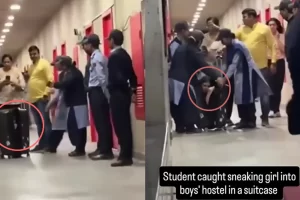 সবার নজর এড়িয়ে প্রেমিকাকে স্যুটকেসে ভরে হোস্টেলে নেওয়ার সময় ধরা পড়লেন এক বিশ্ববিদ্যালয় ছাত্র। ঘটনাটি ভারতের হরিয়ানার সোনিপত জেলার ওপি জিন্দাল বিশ্ববিদ্যালয়ের। ঘটনাটির একটি ভিডিও ইতিমধ্যে সামাজিক যোগাযোগ মাধ্যমে ভাইরাল হয়েছে।