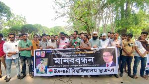সোমবার (২১ এপ্রিল) দুপুর ২ টার দিকে বিশ্ববিদ্যালয়ের ঝাল চত্বরে এ মানববন্ধন করে সংগঠনটির নেতাকর্মীরা।