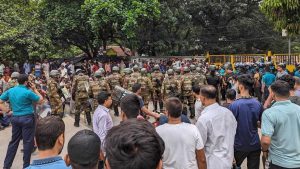 পরিস্থিতি নিয়ন্ত্রণে আনতে সোমবার (২১ এপ্রিল) দুপুর ২টা ৪৫ মিনিটের দিকে সেনাবাহিনী ও পুলিশ সদস্যরা ঘটনাস্থলে আসেন।