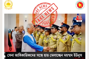 মূলত গত ২৯ এপ্রিল পুলিশ লাইন্সে কৃতিত্বপূর্ণ অবদানের জন্য বাংলাদেশ পুলিশের ৬২ জন সদস্যকে পদক প্রদান করা হয়। তাদের মধ্যে এই ছবিতে রয়েছেন, তিনজন অতিরিক্ত পুলিশ মহাপরিদর্শক খন্দকার রফিকুল ইসলাম, মোসলেহ উদ্দিন আহমদ ও ছিবগাত উল্লাহ এবং উপ-মহাপুলিশ পরিদর্শক কাজী ফজলুল করিম। তারা প্রত্যেকেই নিজ দায়িত্বে কৃতিত্বপূর্ণ অবদানের জন্য বাংলাদেশ পুলিশ পদক পেয়েছেন। এটি কোনো গোপন ছবি নয়। এই ছবিটি প্রধান উপদেষ্টার প্রেস উইং থেকে গণমাধ্যমে সরবরাহ করা হয়েছিল। আজতাক বাংলার প্রতিবেদনে বাংলাদেশ সেনাবাহিনীকে জড়িয়েও মিথ্যা প্রচারণা চালানো হয়েছে। এগুলো সবই বাংলাদেশের বিরুদ্ধে পরিকল্পিত অপপ্রচারের অংশ এবং চরম নিন্দনীয়।