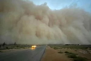 সৌদি আরবের আল কাসিম প্রদেশে দেখা গেছে বিরল এক দৃশ্য ‘ধুলোর প্রাচীর’। বিশালাকৃতির ধূলিঝড় দ্রুতগতিতে অঞ্চলজুড়ে ছড়িয়ে পড়ে, যার ফলে হঠাৎ করেই দৃশ্যমানতা প্রায় শূন্যে নেমে আসে। পরিস্থিতি এতটাই ভয়াবহ হয়ে ওঠে যে, দিনদুপুরে চারপাশে নেমে আসে রাতের মতো অন্ধকার।