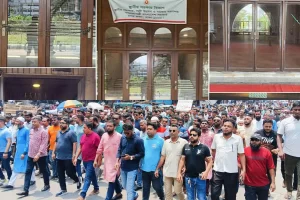 শনিবার সকাল ৯টার দিকে নগর ভবনে প্রবেশের সব ফটকে তালা ঝুলিয়ে দেওয়া হয়।