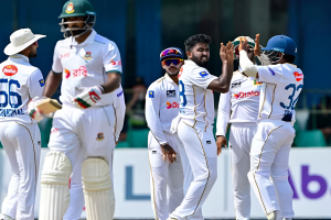 বৃহস্পতিবার (২৬ জুন) দ্বিতীয় দিনে ব্যাট করতে নেমেছিলেন আগের দিনে অপরাজিত থাকা তাইজুল ইসলাম (৯) এবং এবাদত হোসেন (৫)। দিনের শুরুতে ব্যক্তিগত তিন রান যোগ করতেই ফার্নান্দোর বলে লেগ বিফোরে কাটা পড়েন এবাদত। তবে শেষ দিকে লড়াই করতে থাকেন তাইজুল। ৬০ বলে ৩৩ রান করে এই ব্যাটার আউট হলে ২৪৭ রানে অলআউট হয় বাংলাদেশ। টাইগারদের হয়ে সর্বোচ্চ ৪৬ রানের ইনিংস খেলেছেন সাদমান ইসলাম।