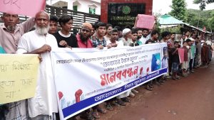 শনিবার (২৮ জুন) দুপুরে স্থানীয় নোয়াখালী ইউনিয়ন পরিষদ সড়কে স্থানীয় এলাকাবাসী এ কর্মসূচি পালন করে। এ সময় সোনাপুর-সাহেবের হাট সড়কে প্রায় আধাঘন্টা যান চলালচ বন্ধ হয়ে যায়।