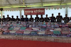 সুনামগঞ্জ সীমান্তে শাড়ি-লেহেঙ্গাসহ সাড়ে ৫ কোটি টাকার ভারতীয় পণ্য জব্দ করেছে বিজিবি। গোপন সংবাদের ভিত্তিতে সদর উপজেলার রঙ্গারচর এলাকায় অভিযান চালায় টাস্কফোর্স। এ সময় একটি পরিত্যক্ত ঘর থেকে বিপুল পরিমান ভারতীয় শাড়ি, লেহেঙ্গা, প্রসাধনীসহ বিভিন্ন পণ্য জব্দ করে বিজিবি।