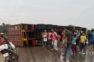 ঘটনার প্রত্যক্ষদর্শীরা জানান, চালক নিয়ন্ত্রণ হারিয়ে ফেলায় কন্টেইনারটি সড়কের মাঝখানে উল্টে যায়। দুর্ঘটনার পর কয়েক ঘণ্টায় যানজট ছড়িয়ে পড়ে প্রায় ১৫ কিলোমিটার এলাকাজুড়ে।