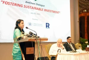 রবিবার ঢাকার বনানীর একটি হোটেলে আমেরিকান চেম্বার অব কমার্স ইন বাংলাদেশ (অ্যামচ্যাম) আয়োজিত ‘অ্যামচ্যাম ডায়লগ অন ফস্টারিং সাসটেইনেবল ইনভেস্টমেন্ট’ শীর্ষক আলোচনায় প্রধান অতিথির বক্তব্যে তিনি এসব কথা বলেন।