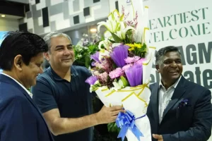 হজরত শাহজালাল আন্তর্জাতিক বিমানবন্দরে এসিসি প্রধানকে ফুল দিয়ে স্বাগত জানান বাংলাদেশ ক্রিকেট বোর্ডের (বিসিবি) সভাপতি আমিনুল ইসলাম বুলবুল। এ সময় বিসিবির প্রধান নির্বাহী নিজামউদ্দিন চৌধুরীও উপস্থিত ছিলেন।