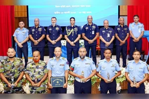 বাংলাদেশ বিমান বাহিনীর ২০২৪ সালের শ্রেষ্ঠ বিমানসেনা ও এমওডিসি (এয়ার)-দের মাঝে ট্রফি ও সনদপত্র বিতরণ করা হয়েছে।