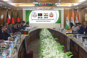 বর্ডার গার্ড বাংলাদেশ (বিজিবি) ও ভারতের বর্ডার সিকিউরিটি ফোর্স (বিএসএফ)-এর মহাপরিচালক পর্যায়ের ৫৬তম সীমান্ত সম্মেলন শুরু হয়েছে। মঙ্গলবার (২৬ আগস্ট) সকালে রাজধানীর পিলখানাস্থ বিজিবি সদর দপ্তরের সম্মেলন কক্ষে বৈঠকটি অনুষ্ঠিত হয়।