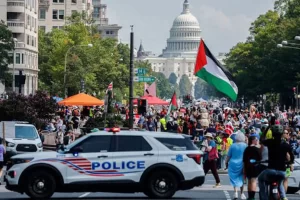স্থানীয় সময় শনিবার ‘উই আর অল ডিসি’ শিরোনামের এ মিছিলে অংশ নেন অনিবন্ধিত অভিবাসী ও ফিলিস্তিন রাষ্ট্র প্রতিষ্ঠার সমর্থকেরাও। তারা হাতে ব্যানার নিয়ে স্লোগান দেন— “ট্রাম্পকে এখনই যেতে হবে”, “ডিসিকে মুক্ত করো”, “স্বৈরশাসনের বিরুদ্ধে প্রতিরোধ গড়ো”।