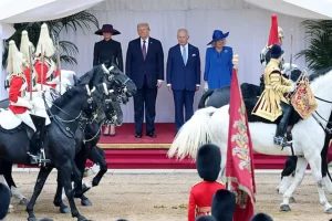 মার্কিন প্রেসিডেন্ট ডোনাল্ড ট্রাম্পকে রাজকীয় সংবর্ধনায় স্বাগত জানিয়েছে ব্রিটেন। বুধবার ব্রিটিশ রাজপ্রাসাদ উইন্ডসর ক্যাসলে পৌঁছালে লালগালিচা সংবর্ধনা, তোপধ্বনি ও অশ্বারোহী বাহিনীর প্রদর্শনীর মতো রাজকীয় আড়ম্বরের মধ্য দিয়ে সস্ত্রীক ট্রাম্পকে স্বাগত জানায় রাজপরিবার।