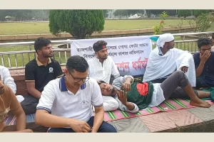 রাজশাহী বিশ্ববিদ্যালয়ে (রাবি) পোষ্য কোটা পুনর্বহালের প্রতিবাদে কাফনের কাপড় পড়ে আমরণ অনশনে বসেছেন শিক্ষার্থীরা। উপাচার্যসহ প্রশাসনের ঊর্ধ্বতন কর্মকতারা অনশন ভাঙার আহ্বান জানালেও রাজি হননি অনশনকারীরা। এ কোটা বাতিল না করা পর্যন্ত অনশন চালিয়ে যাওয়ার ঘোষণা দিয়েন তারা।