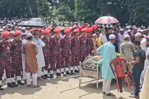 এসময় ময়মনসিংহ বিভাগীয় ফায়ার সার্ভিসের উপপরিচালক (ভারপ্রাপ্ত) পূর্ণ চন্দ্র মুৎসুদ্দী ও নেত্রকোনা ফায়ার সার্ভিসের সহকারী উপপরিচালক হাফিজুর রহমান ফায়ার সার্ভিস থেকে গার্ড অব অনার দেন। এরপর অনান্য রাজনৈতিক সামাজিক নেতৃবৃন্দসহ এলাকার দল মত নির্বিশেষে মানুষ জানাজায় অংশ নেন।