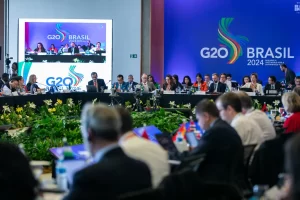 জলবায়ু ইস্যুতে জাতিসংঘের আলোচনার অচলাবস্থাতেই থেকে গেলো। এই পরিস্থিতির উন্নতি করতে পারলেন না শিল্পোন্নত ও বিকাশমান অর্থনীতির দেশগুলোর জোট জি-২০। ব্রাজিলের রিও ডি জেনিরো শহরে চলমান এই জোটের শীর্ষ সম্মেলনে সোমবার এ বিষয়ে সাফল্য দেখাতে পারেনি। এছাড়ও ইউক্রেন যুদ্ধ বন্ধেও কোনো মতৈক্যে পৌঁছাতে পারেননি এই জোটের নেতারা।